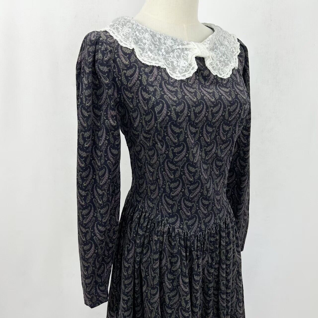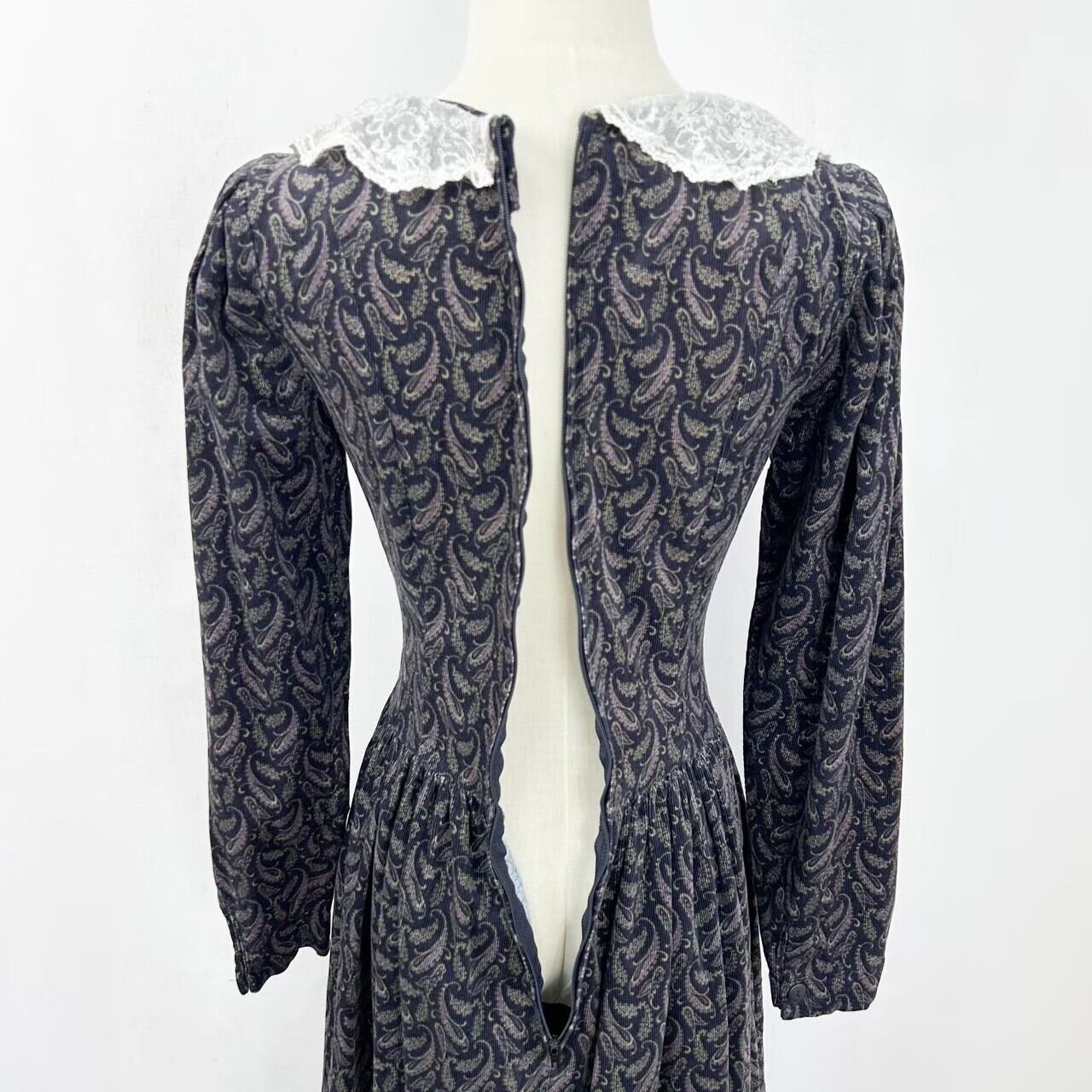 80s made in Great Britain Laura Ashley lace collar paisley pattern corduroy dress 80年代 イギリス製 ローラアシュレイ レース襟 ペイズリー柄 コーデュロイワンピース
