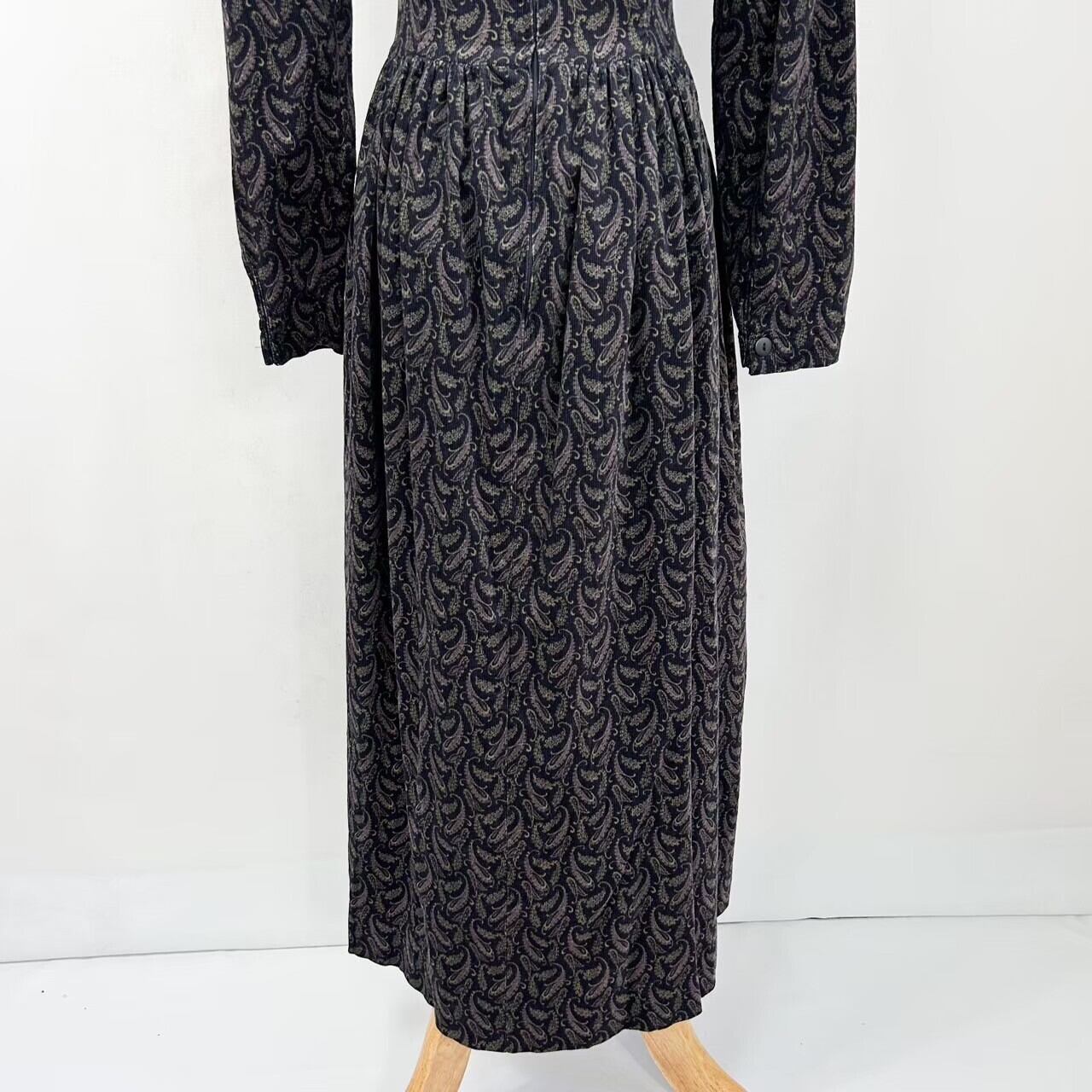 80年代 英国製 イギリス製 ローラアシュレイ レース襟 リボンデザイン ペイズリー柄 長袖 コーデュロイ ロングワンピース